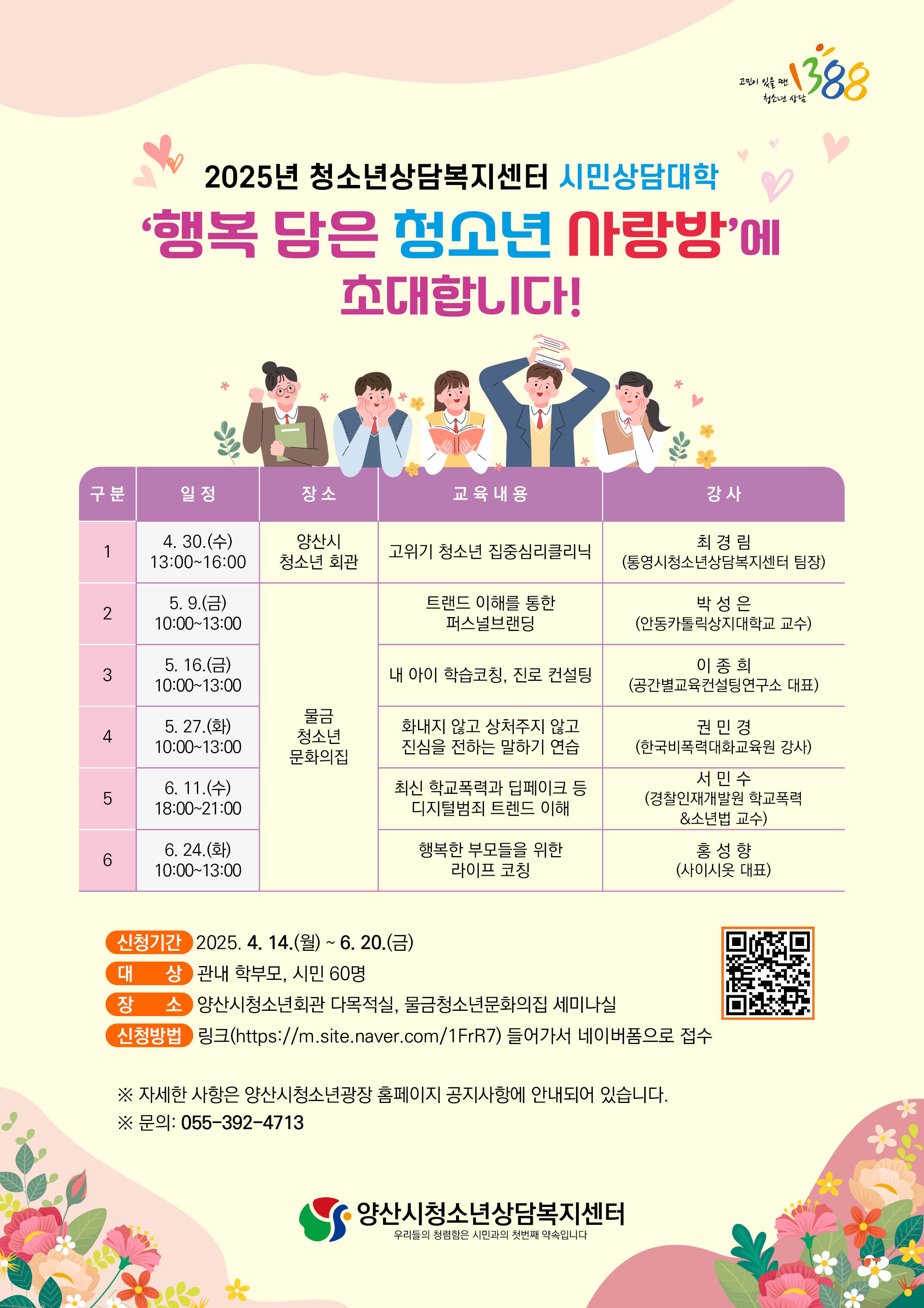 양산시청소년상담복지센터 시민 상담대학 운영 안내드립니다.